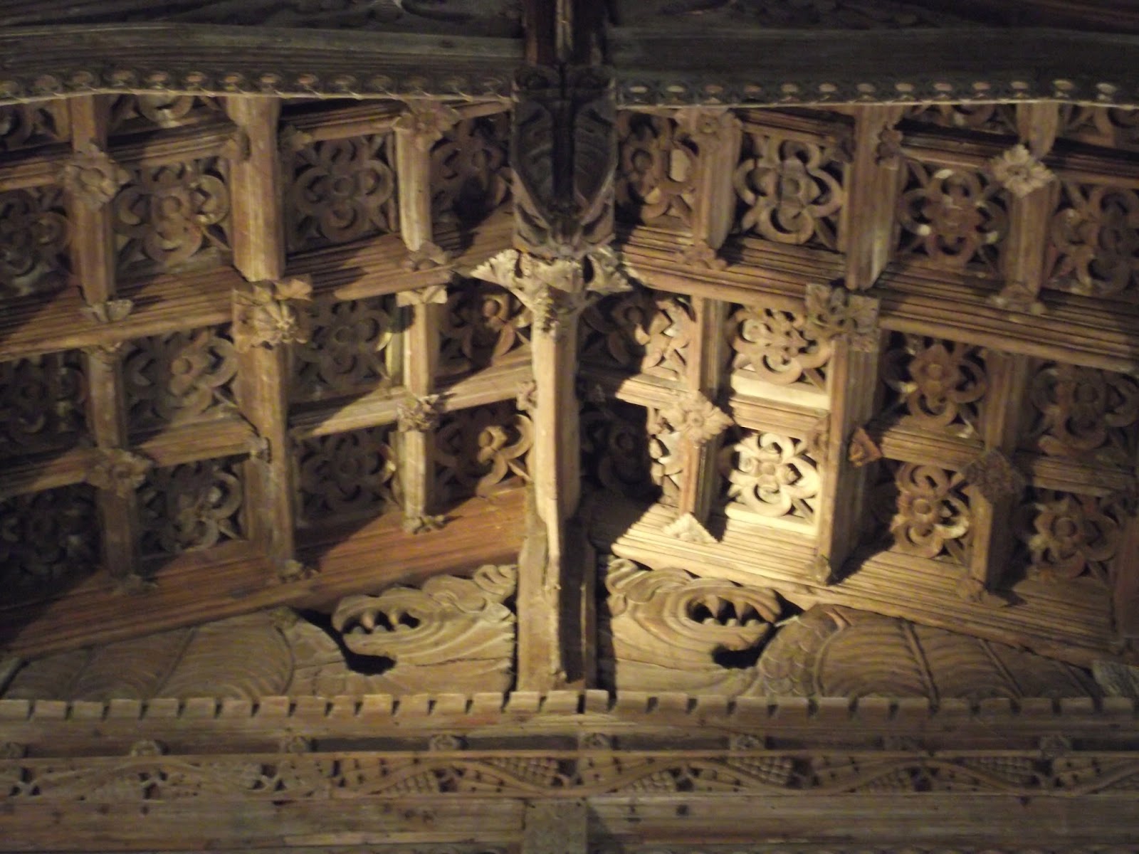 Incredible carved wood ceiling with dragons below